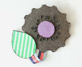 花びらのなかに、ドットやボーダーのテキスタイルを重ねて